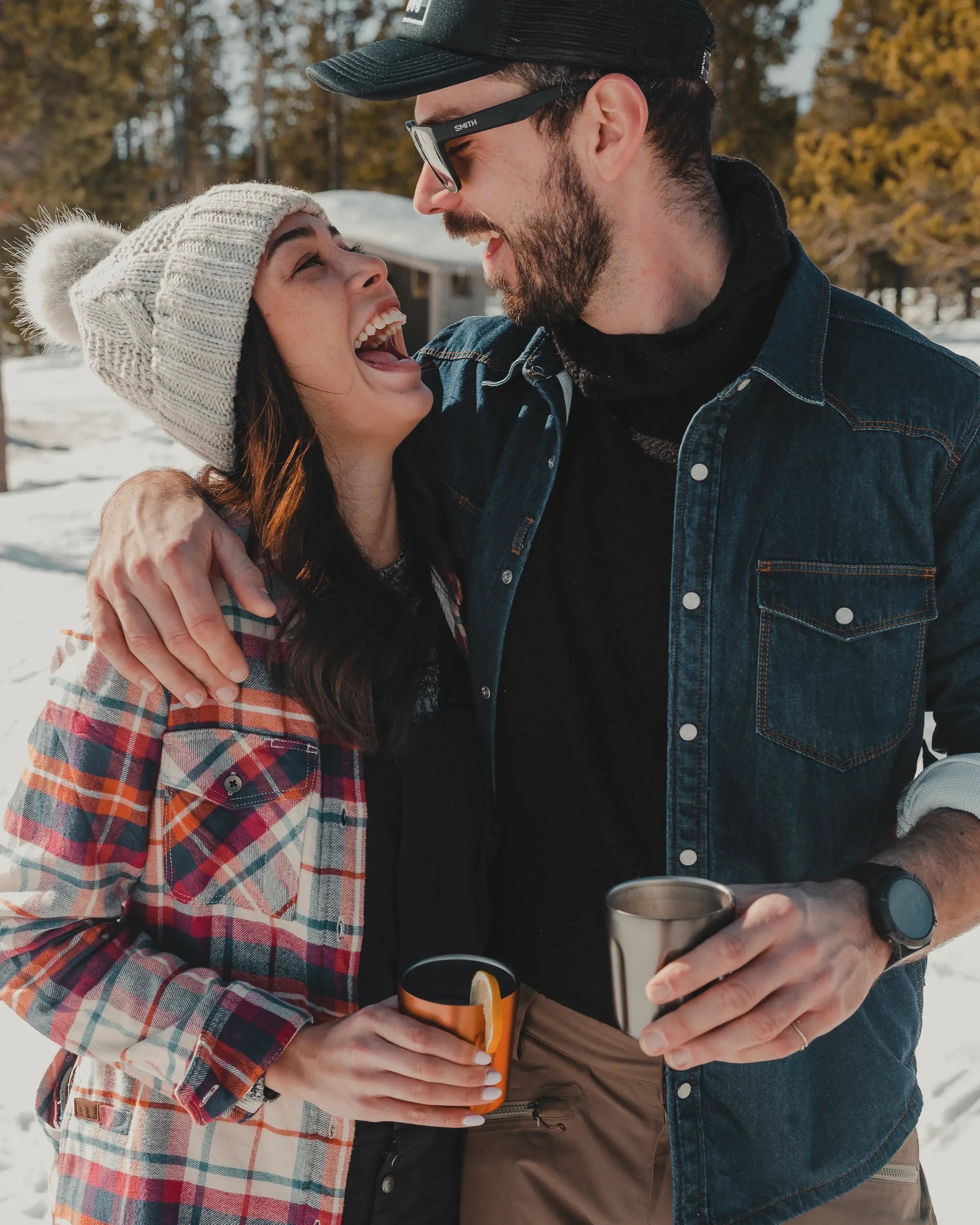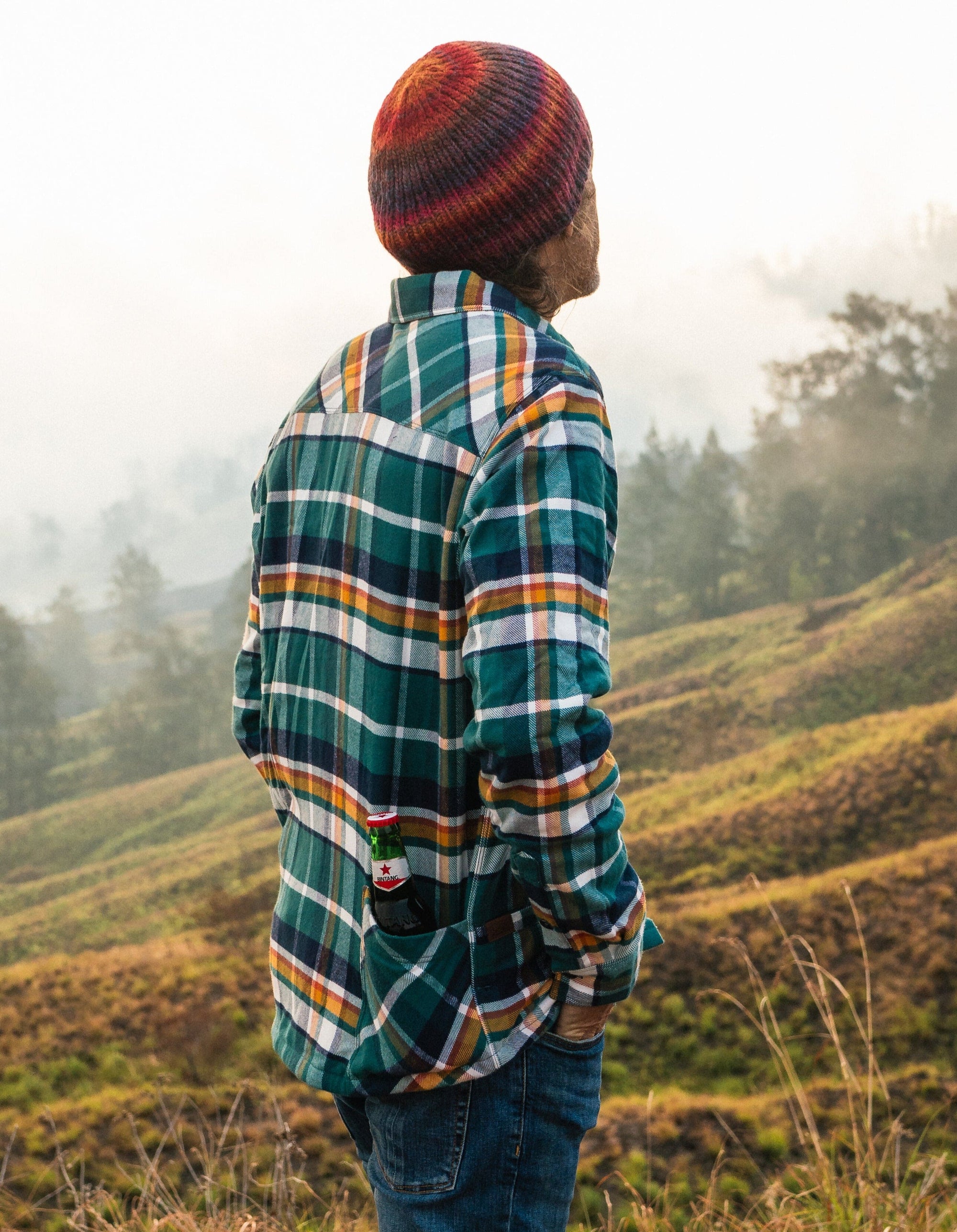 Our signature après-ski flannel shirt - featuring luxury Portuguese cotton, cozy thermal lining, plus special pockets for your phone, bottle opener and frosty beverage.